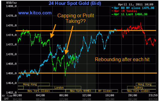 Gold for June delivery was down $4.60 to $1,469.50 an ounce at the Comex division of the New York Mercantile Exchange. The gold price has traded as high as $1,478 and as low as $1,465.60 while the spot gold price was shedding more than $7, according to Kitco's gold index. This is news from early this am. However, the prices of both metals are down lower now. HERE.
